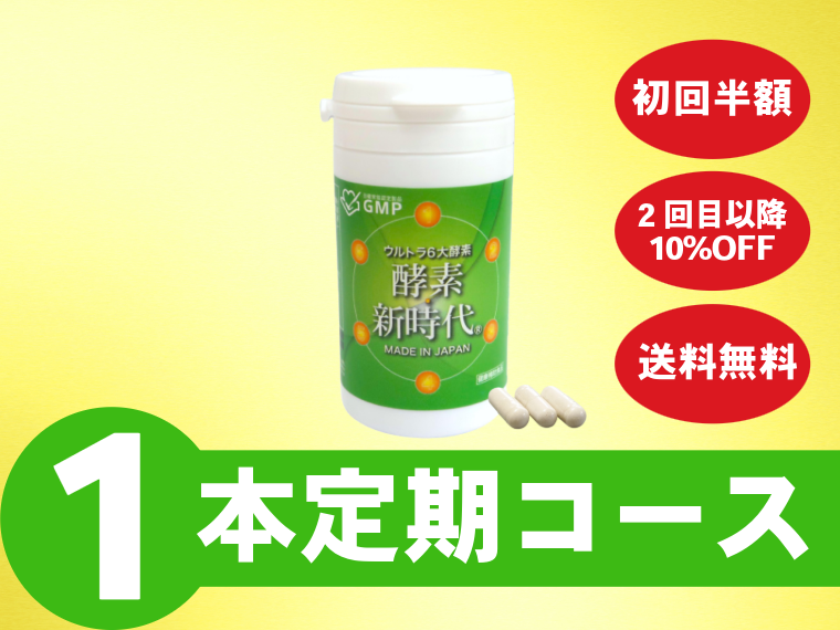酵素新時代90カプセルが月に1袋が4ヶ月届く定額制プラン(以後自動更新)です。